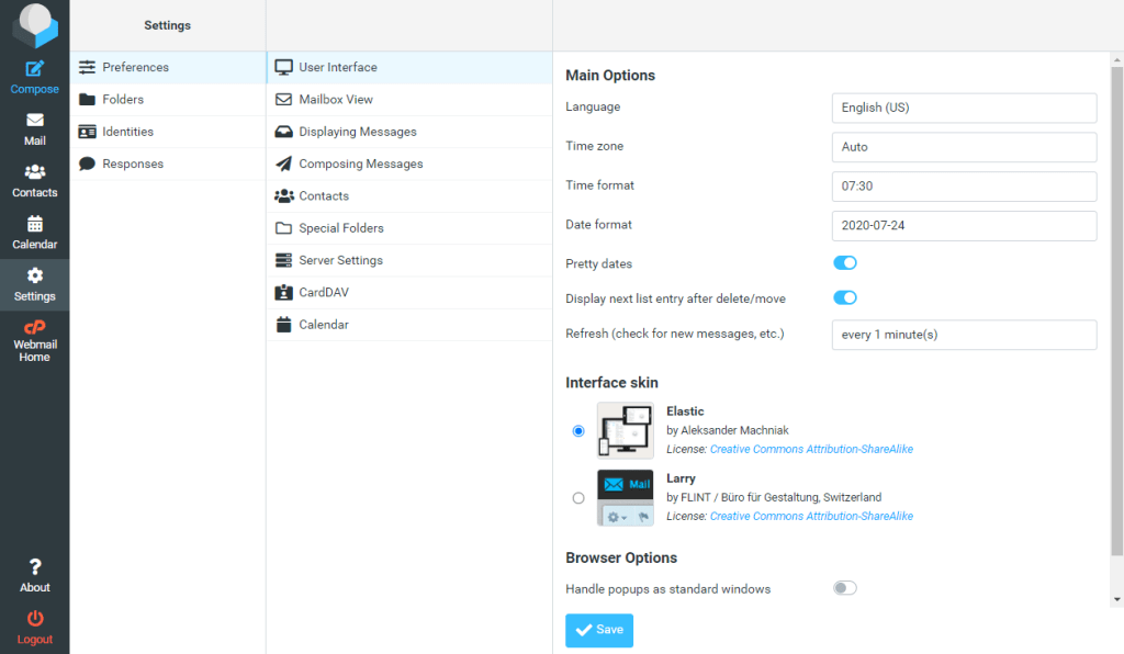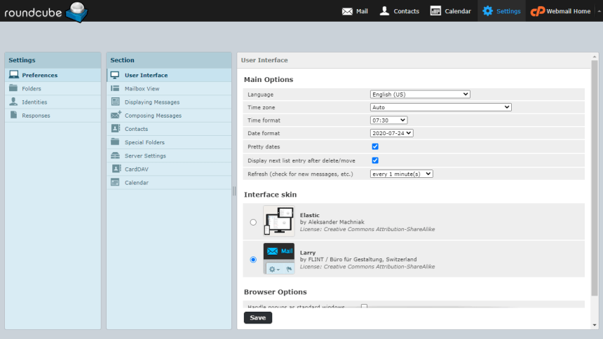 Ca parte a actualizărilor de securitate, interfața RoundCube a primit, de asemenea, un aspect actualizat (sau o temă) pentru a o aduce la standardele web și mobile.